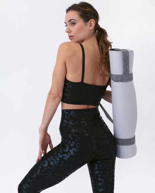 Nicola Metallic Leopard Crop Top - Black