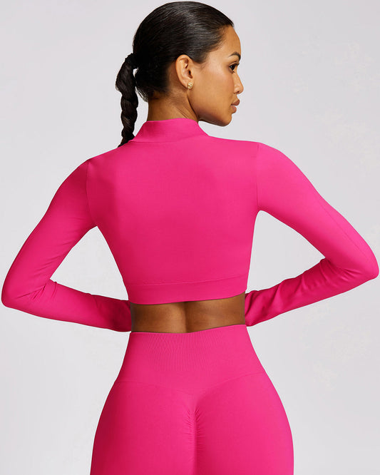 Alicia Long Sleeve Skin Tight Zipper Romper - Pink