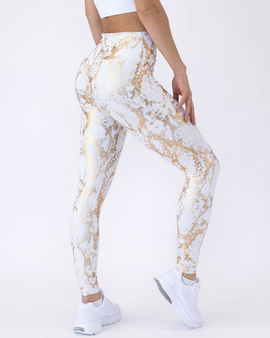 Scarlet Metallic Scrunch Leggings - Snow Gold