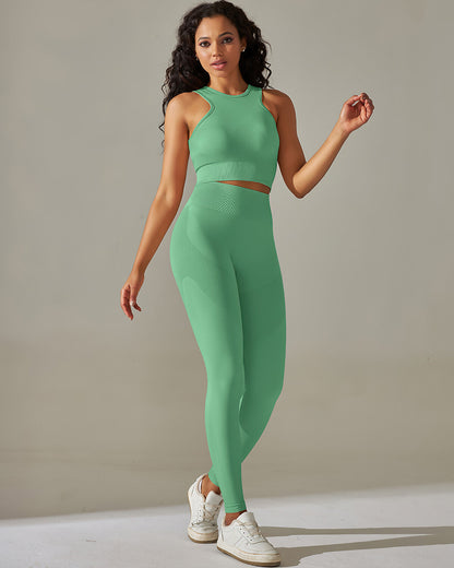 For a seamless look and ultimate comfort, pair it with our Cleo Seamless Leggings, Cleo Seamless Shorts, Cleo Sports Bra, or Cleo Crossback Sports Bra - all in matching green.