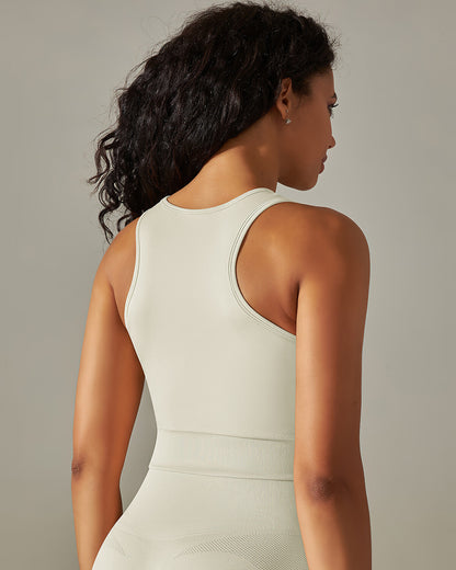 Its contouring panels not only accentuate curves but also serve as ventilation. Embrace style and functionality with this soft, skin-friendly, and breathable crop top that's perfect for any activity, keeping you confident and cool as you conquer your fitness goals.