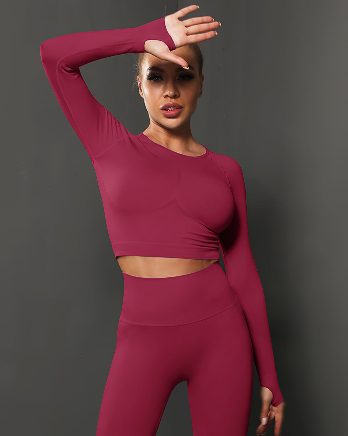 Get ready to take on any workout with this form-enhancing outfit. Made of comfortable, lightweight elastic fabric, soft to the touch, and gentle to your skin. This long sleeve is the perfect choice for showing off at the gym or running in the park.