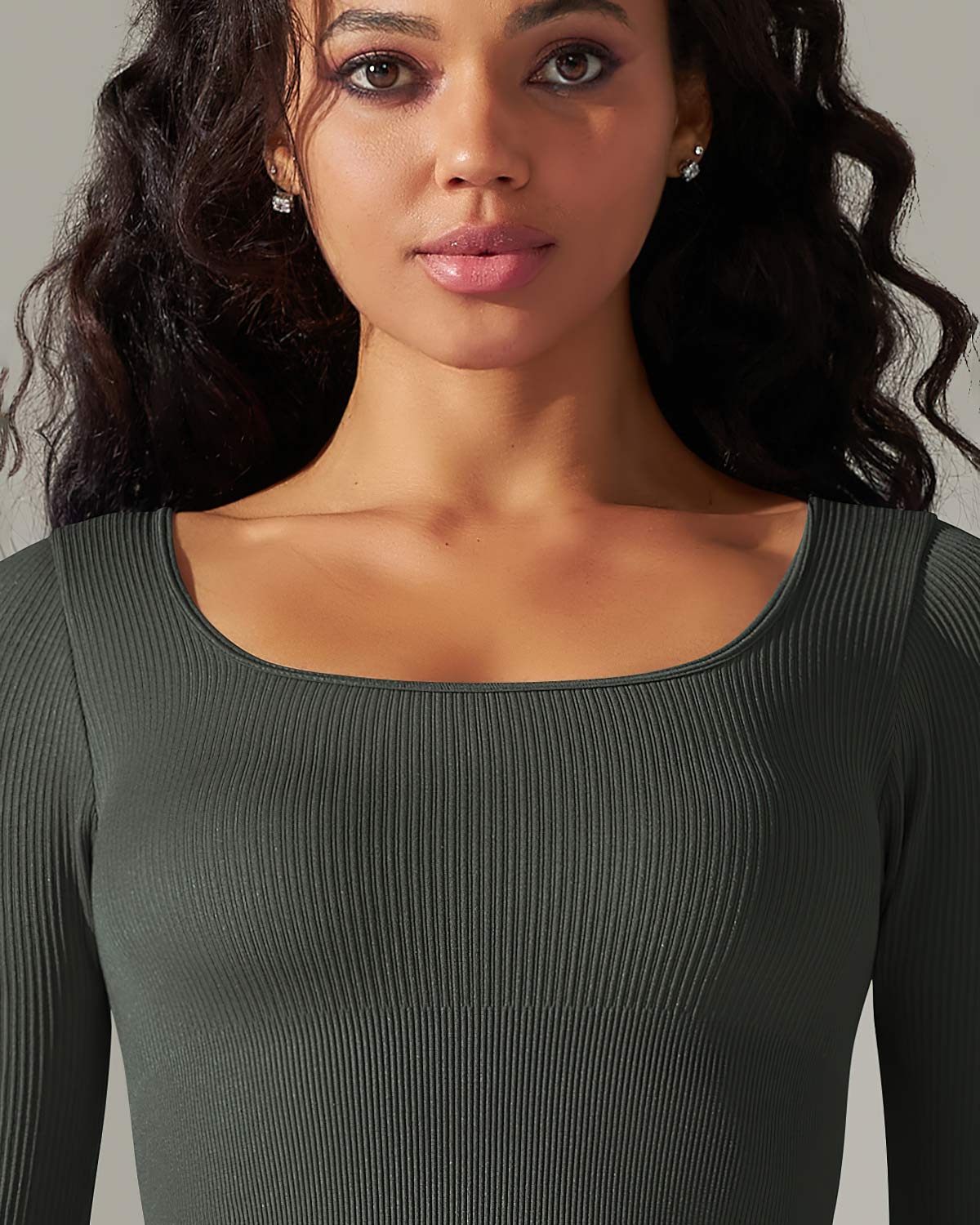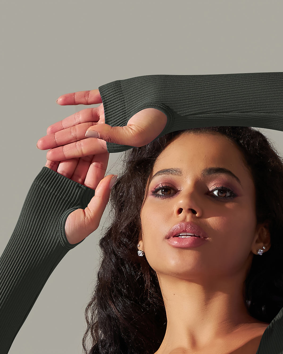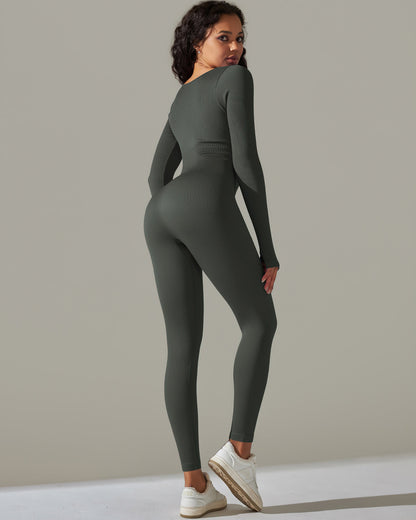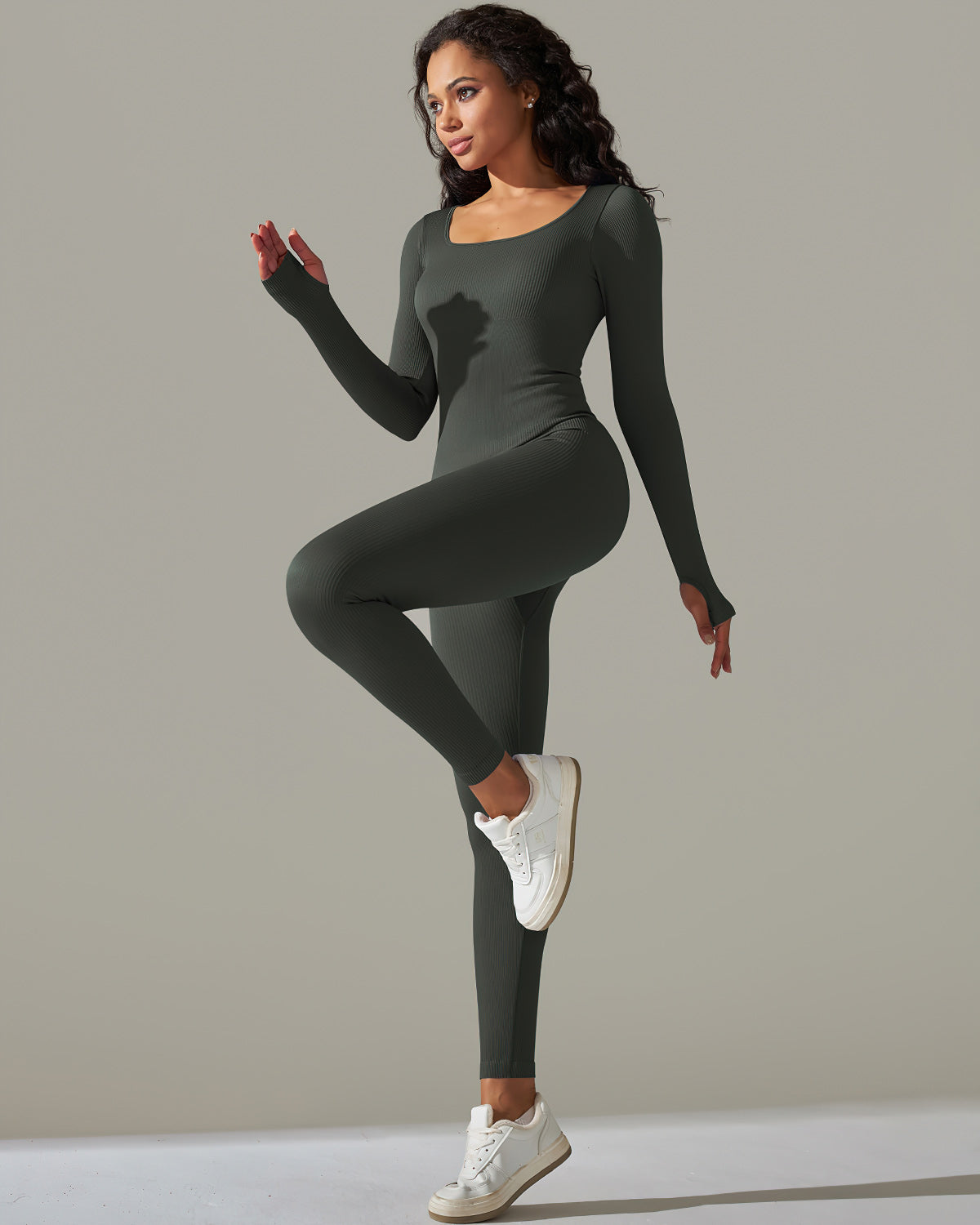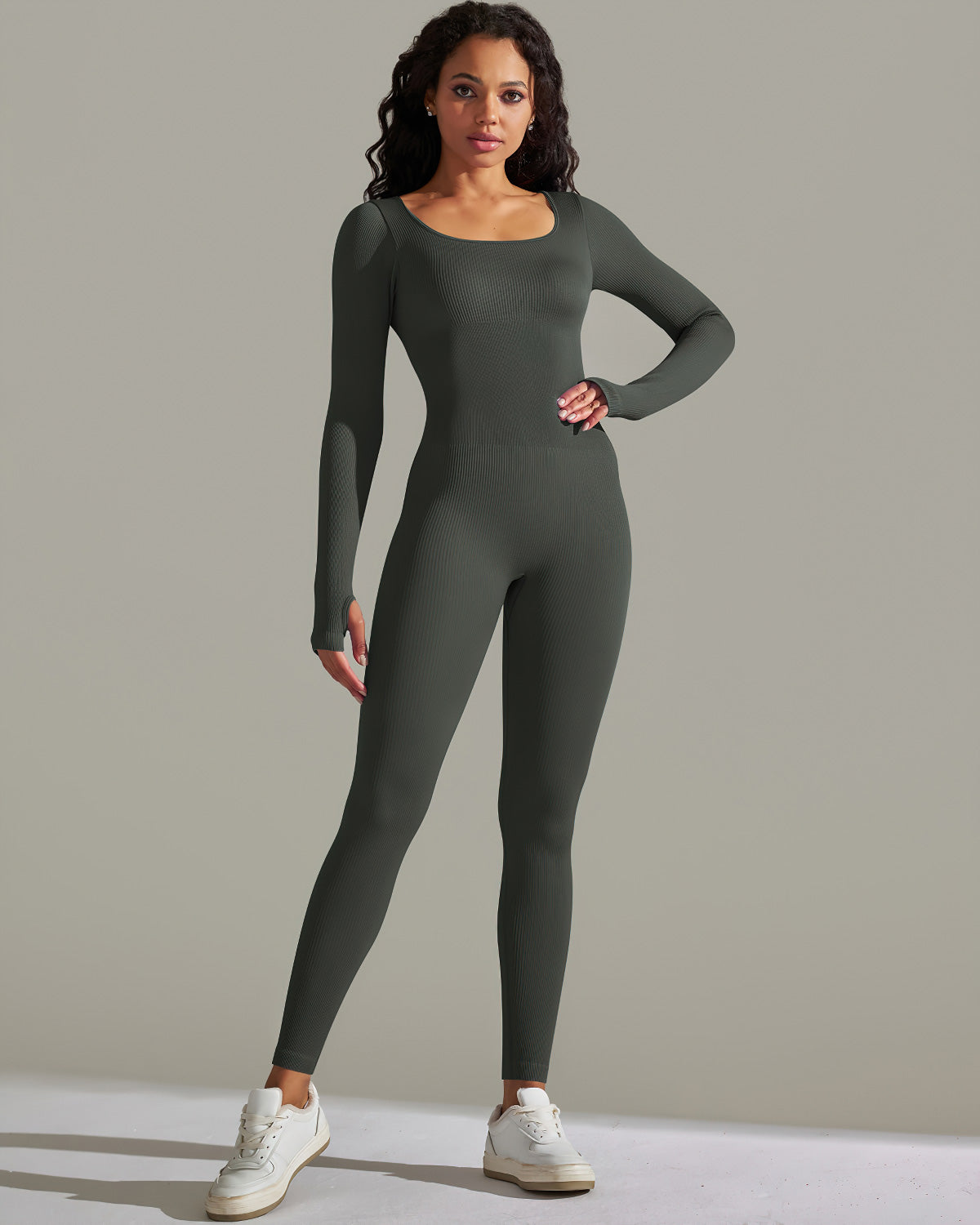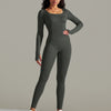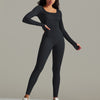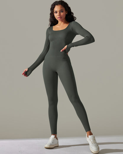 Power up your performance with the Gia Seamless Jumpsuit, a sleek one-piece designed to move with you. Featuring a square collar and long sleeves with thumb holes, this jumpsuit delivers a modern, athletic look while keeping you warm and supported during any workout.