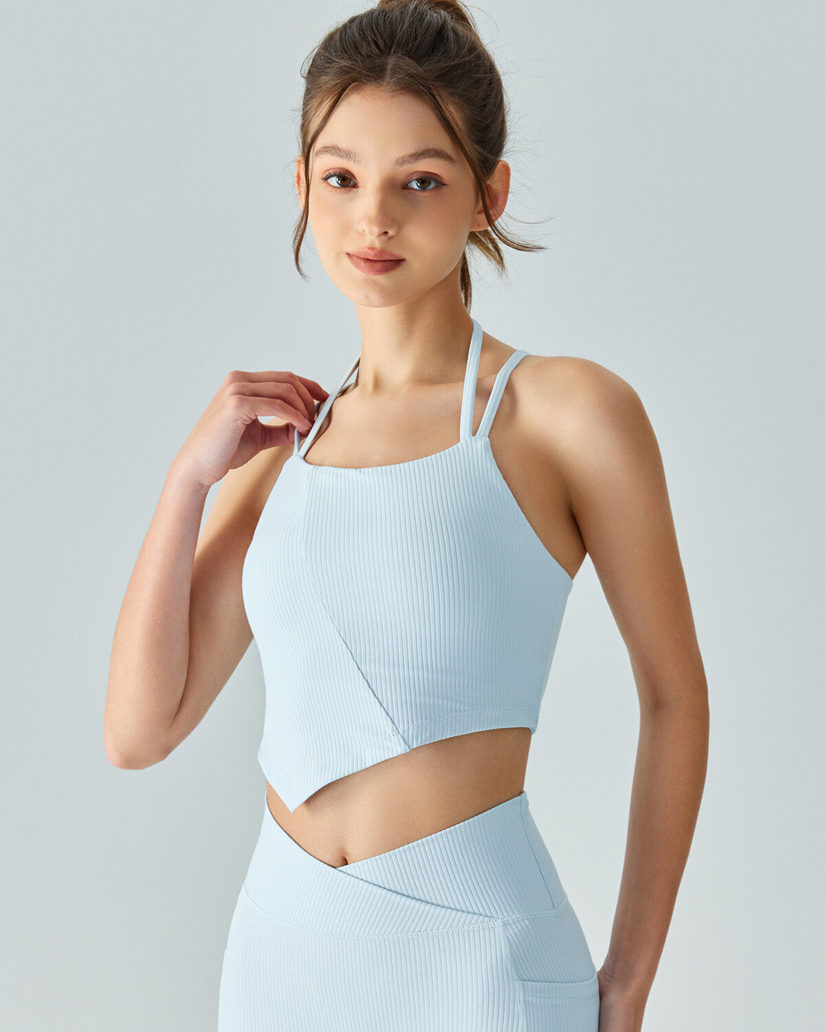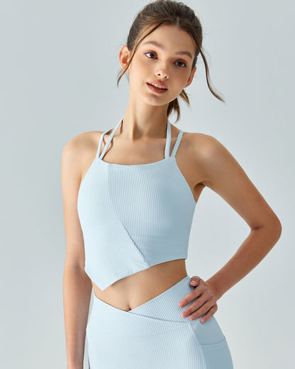 Experience timeless elegance with our Irene Tank Top. Meticulously crafted, its ribbed texture exudes sophistication while providing remarkable stretch for workouts or leisure. The halter neck design with cut away shoulders and intricate strappy detailing offers a blend of style and comfort.