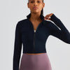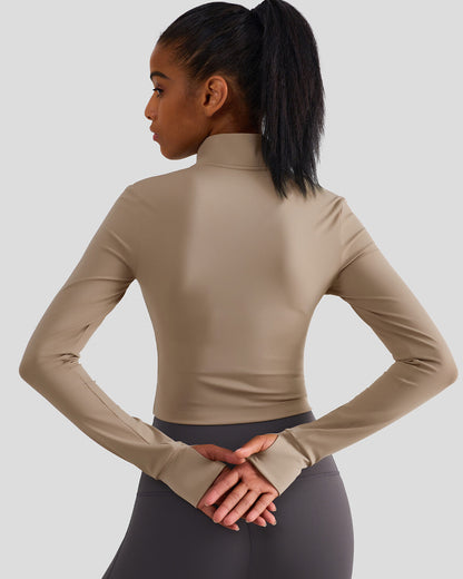 Elevate your workout wardrobe with the Naya Long Sleeve, a versatile essential designed to empower your fitness journey with style and functionality. Crafted with a slim and flattering silhouette, this long sleeve features long sleeves with thumb holes for added protection and coverage, perfect for chilly seasons and intense workouts. The mock neck and full-zip closure provide additional warmth and versatility, ensuring you stay comfortable and focused during your training sessions.