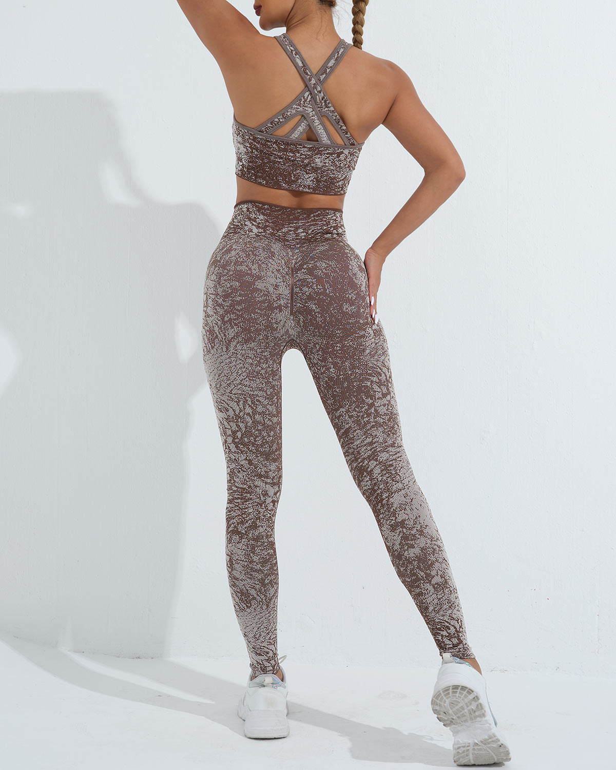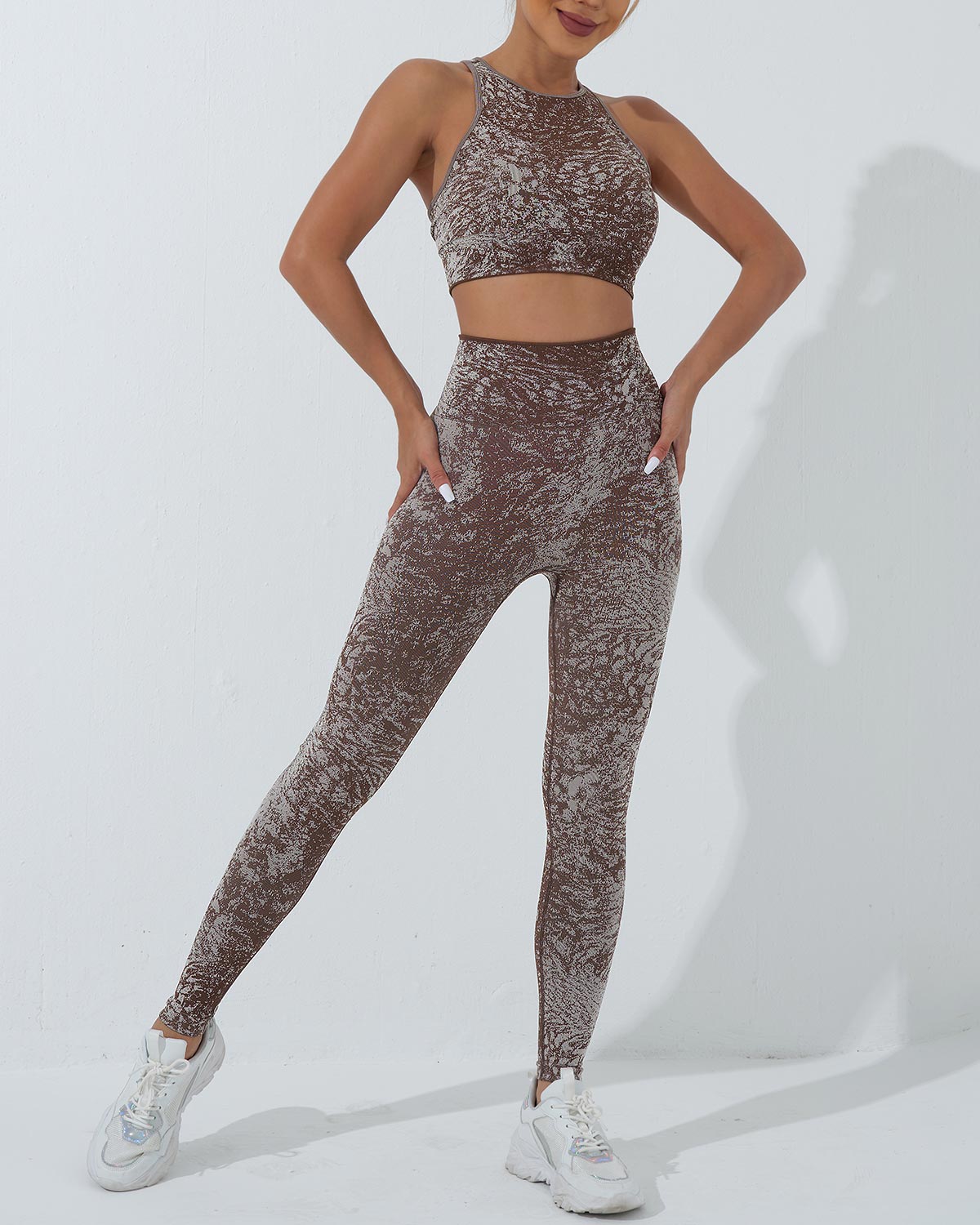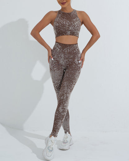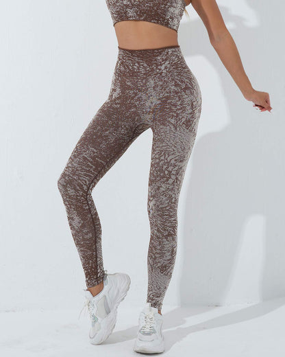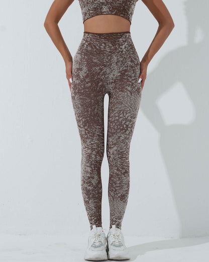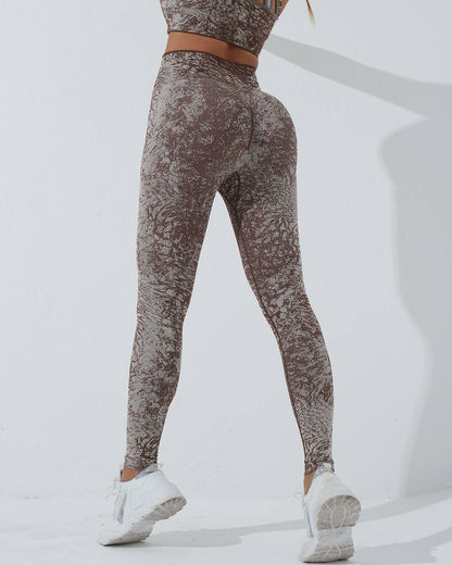 Conquer your workout with the Vera Seamless Leggings, featuring a striking camouflage pattern and a high-rise, wide waistband for a smooth, supportive fit. Designed to sculpt and flatter your natural shape, the curved yoke enhances your silhouette, keeping you confident and comfortable throughout your routine.