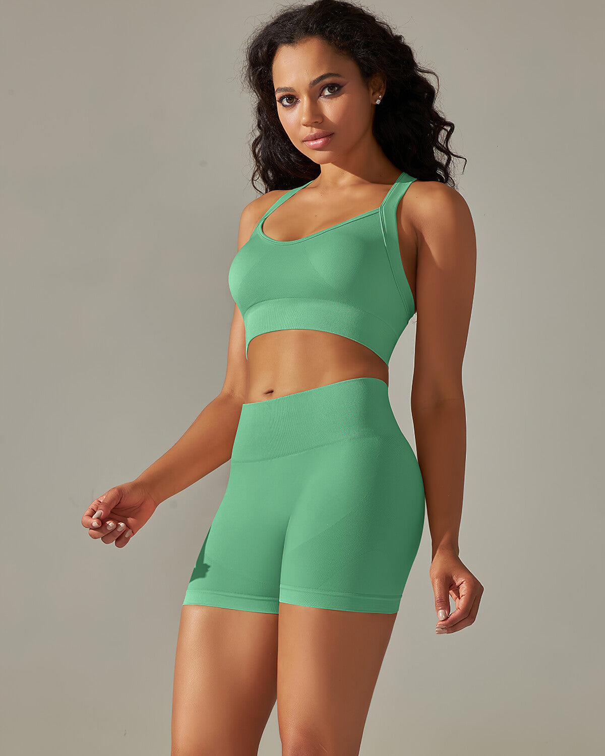 For a seamless look and ultimate comfort, pair it with our Cleo Sports Bra, Cleo Crop Top, Cleo Crossback Sports Bra, and Cleo Seamless Leggings - all in matching green.
