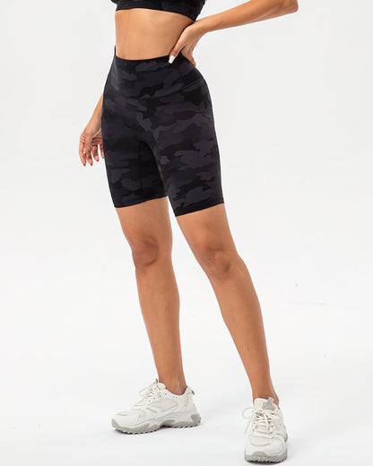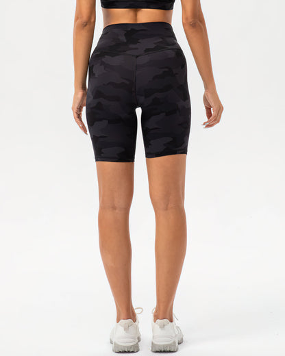 This versatile high-rise biker camo short is made to take you from studio to street with its strong recovery and compression features. A high waist and mid-length thigh make this your ultimate performance piece to hit that personal record on your bike or continue your yoga flow.