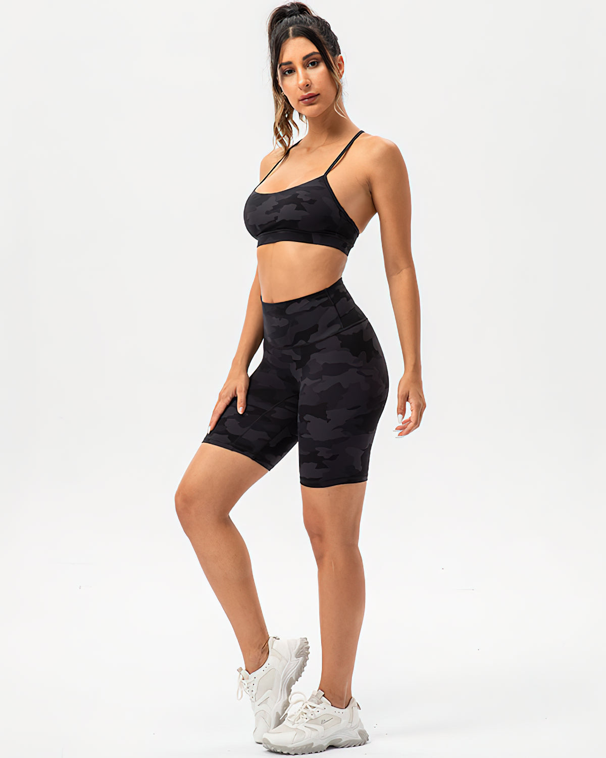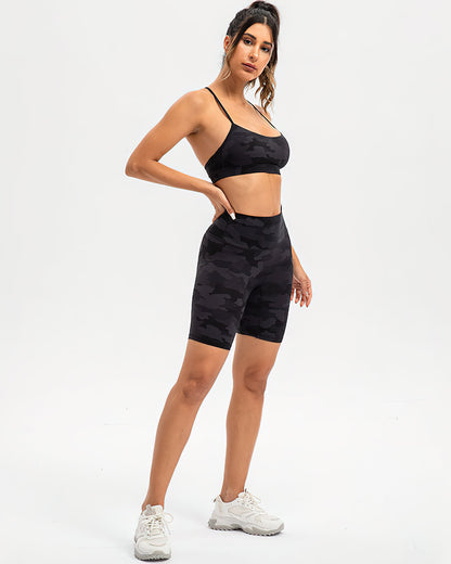 Pair back with our Harper Camo Y Sports Bra - Black and Harper Camo Sports Bra - Black to complete the set. If you like leggings, you can also try the Harper Camo Leggings - Black.