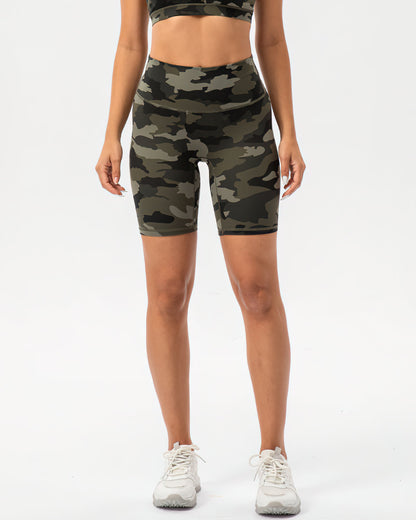 This versatile high-rise biker camo short is made to take you from studio to street with its strong recovery and compression features. A high waist and mid-length thigh make this your ultimate performance piece to hit that personal record on your bike or continue your yoga flow.