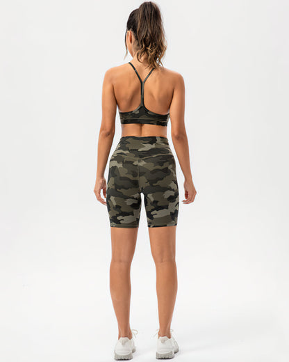 Pair back with our Harper Camo Y Sports Bra - Olive and Harper Camo Sports Bra - Olive to complete the set. If you like leggings, you can also try the Harper Camo Leggings - Olive.