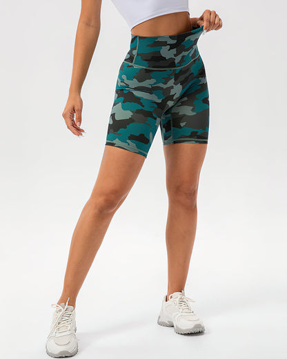 This versatile high-rise biker camo short is made to take you from studio to street with its strong recovery and compression features. A high waist and mid-length thigh make this your ultimate performance piece to hit that personal record on your bike or continue your yoga flow.