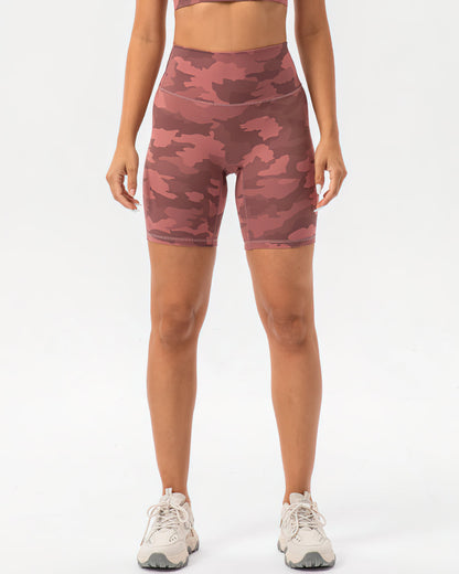 This versatile high-rise biker camo short is made to take you from studio to street with its strong recovery and compression features. A high waist and mid-length thigh make this your ultimate performance piece to hit that personal record on your bike or continue your yoga flow.