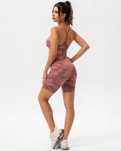 Pair back with our Harper Camo Y Sports Bra - Pink and Harper Camo Sports Bra - Pink to complete the set. If you like leggings, you can also try the Harper Camo Leggings - Pink.