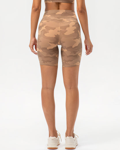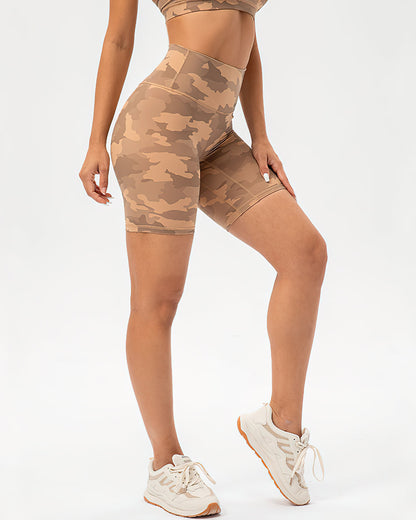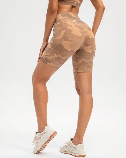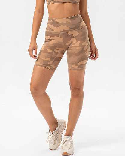 This versatile high-rise biker camo short is made to take you from studio to street with its strong recovery and compression features. A high waist and mid-length thigh make this your ultimate performance piece to hit that personal record on your bike or continue your yoga flow.