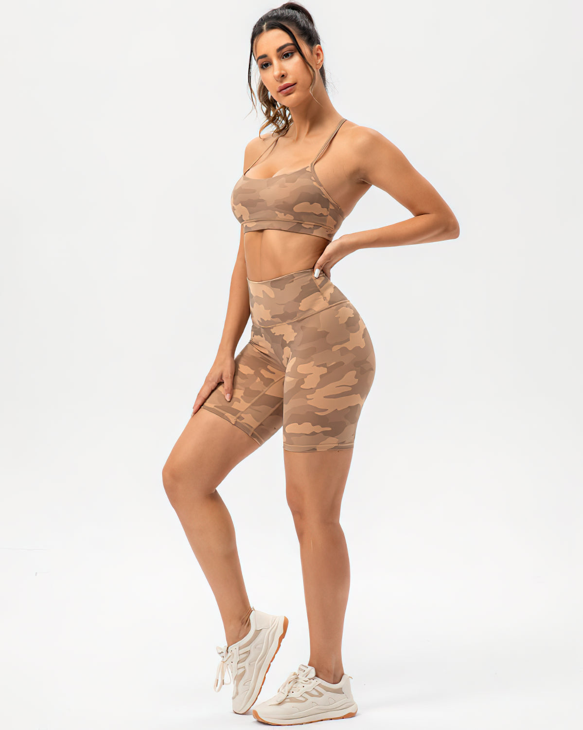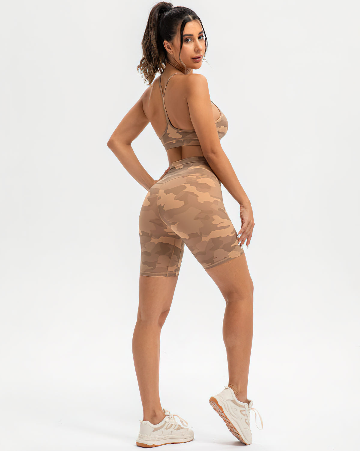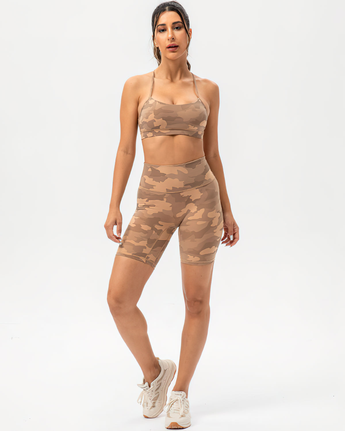 Pair back with our Harper Camo Y Sports Bra - Teak and Harper Camo Sports Bra - Teak to complete the set. If you like leggings, you can also try the Harper Camo Leggings - Teak.