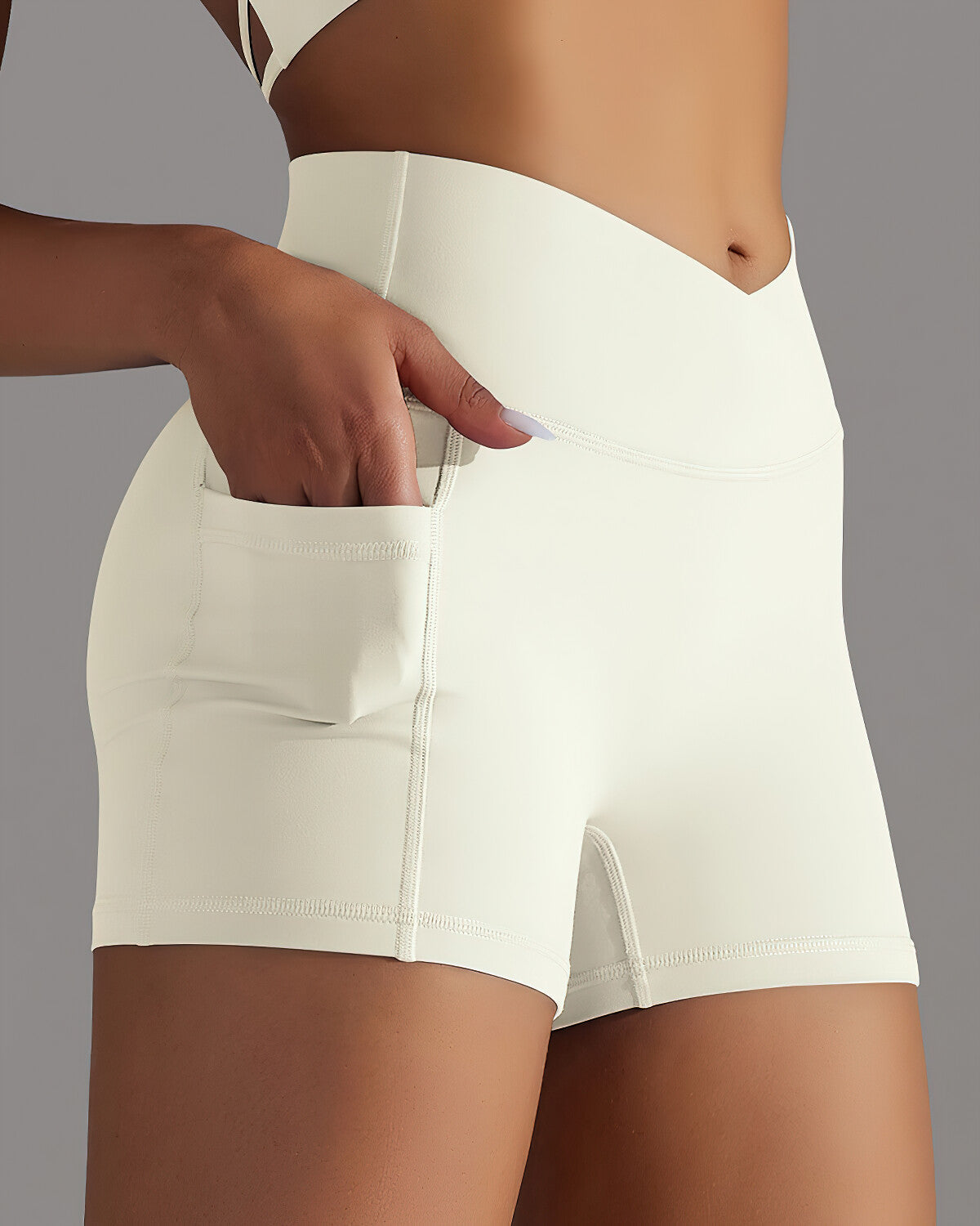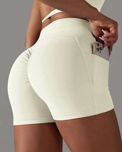 Selene Seamless Pocket Scrunch Shorts - Beige