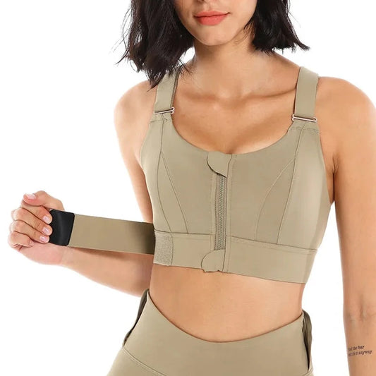 Adjustable Cropped Zip Up Sports Bra - Olive Grey