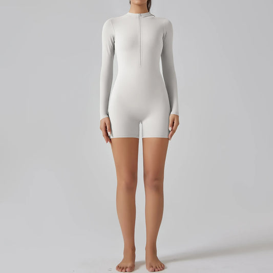 Alicia Long Sleeve Skin Tight Zipper Romper - White Ash
