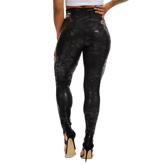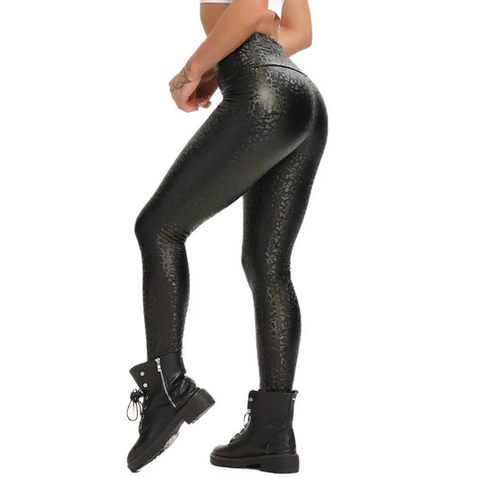 PU Leather Shaping Elasticated Leggings - Black Leopard
