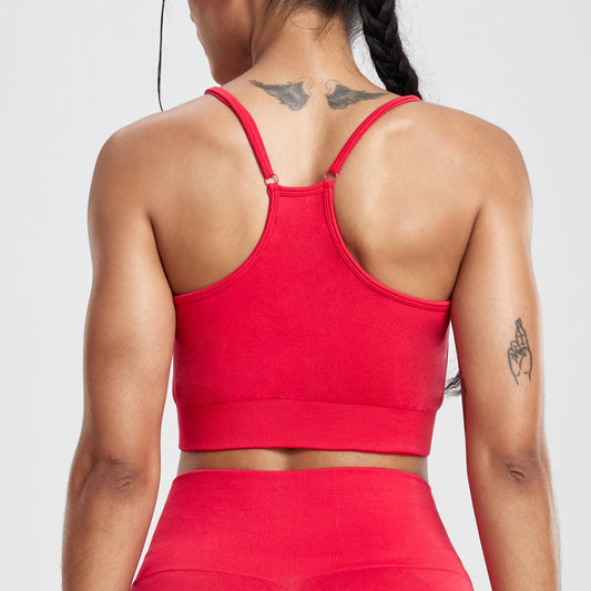 Halter Neckline Chest Twist Workout Top With Chest Pads - Red