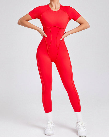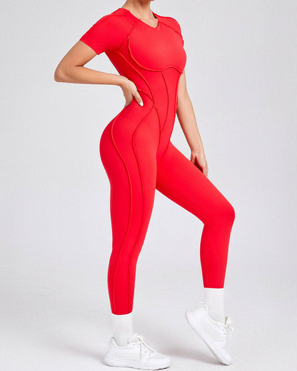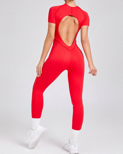 Unleash your potential in the Kira Flow Jumpsuit—a sleek, high-performance piece designed to move with you. Featuring short sleeves and an open back, it delivers a perfect balance of breathability and coverage, keeping you confident and stylish from start to finish.