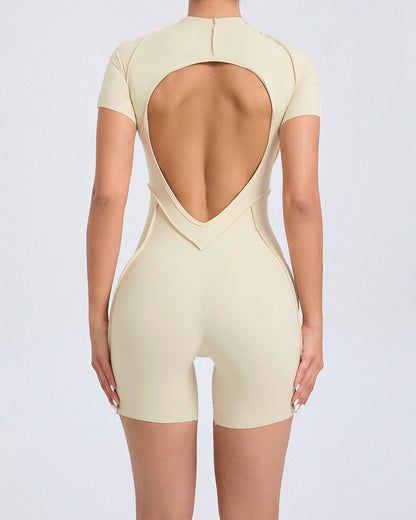 Take your workout to the next level with the Kira Sprint Jumpsuit—your ultimate companion for movement and style. Featuring short sleeves, a sleek open back, and a supportive fit, this jumpsuit is built to perform while turning heads. Its tailored silhouette and streamlined design let you flow effortlessly from studio to street.