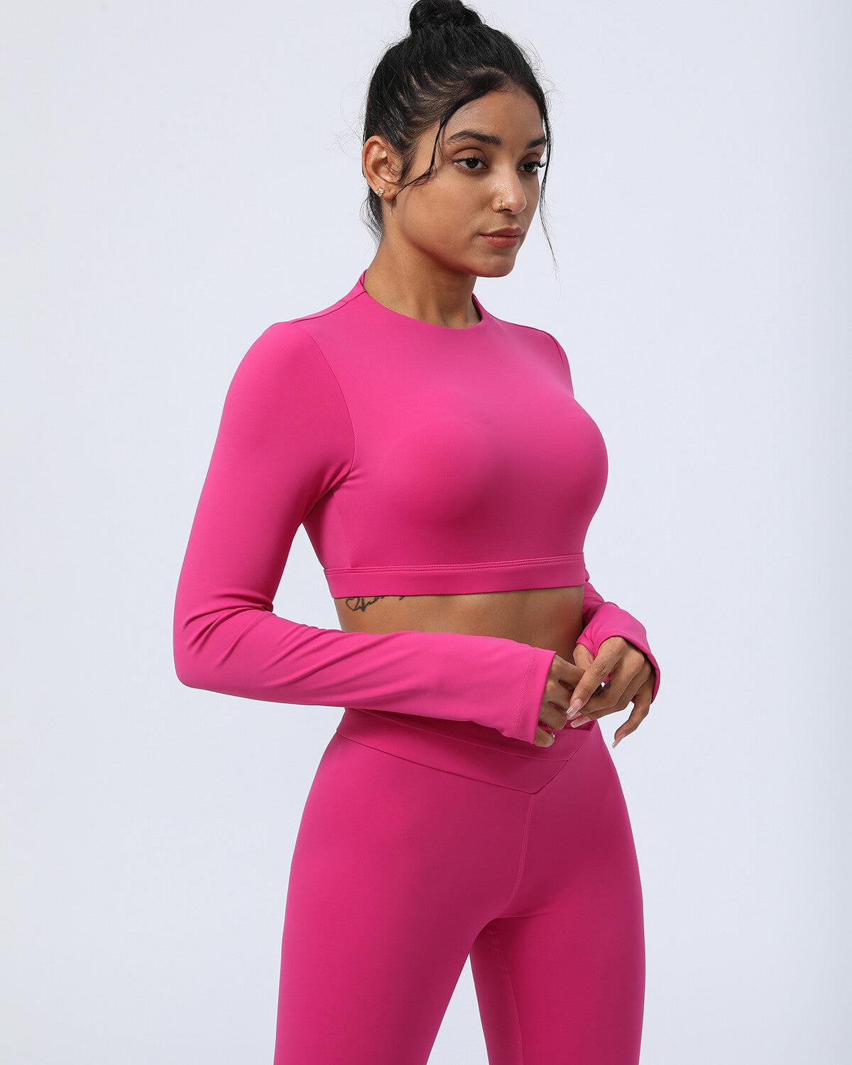 Elevate your workout wardrobe with the Aviana Long Sleeve, designed to boost your confidence and performance wherever your journey leads. The flattering cropped cut amplifies your style and confidence, whether you're hitting the yoga studio, gym, or conquering the outdoors. Crafted with a second-skin fit and medium stretch, it offers optimal support while allowing effortless movement with every stretch and stride.