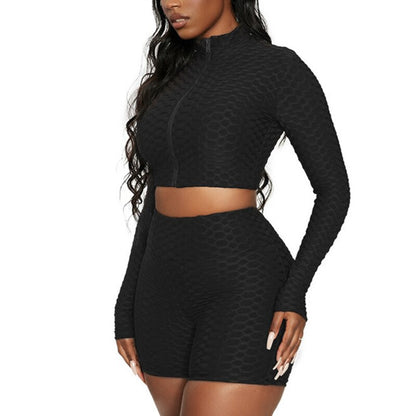 The Booty Lifting X Anti-Cellulite Short and top sets are unlike any other gym sets you'll find. They have a textured honeycomb design that oozes with a chic and sexy vibe. The shorts have back fold design that gives the butt a plumper and rounder look! How about the tummy area? Don’t worry. The stretchable and non-digging high-waist band will keep everything in. The matching tops combine the same material and are breathable and super stylish!