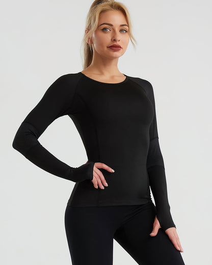 These long sleeves are not only flexible, stretchable, and breathable, but they're also made of a fast-drying sweat-wicking material to keep you dry when you're going hard at your routine. Its flatlock seam construction and moderate compression allow you to go from workouts to errands with ease.