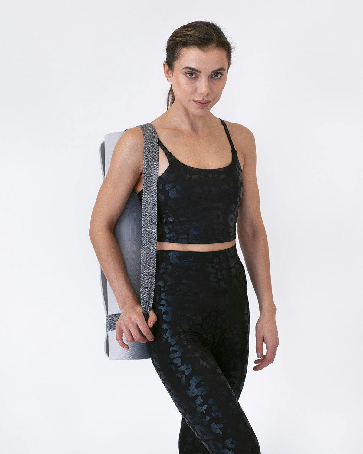 Pair with the matching Nicola Metallic Leopard Leggings - Black to complete the look!. Also available as sports bra: Nicola Metallic Leopard Sports Bra - Black.