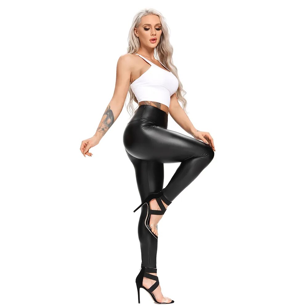 Elevate your style with these Women's Faux Leather High Waisted Leggings, designed to make a bold statement. Crafted from bold and supple PU leather, these leggings exude a sleek and modern aesthetic. The high-waisted design not only offers a chic look but also provides a comfortable and secure fit. With their elastic shaping and hip-enhancing design, these leggings are perfect for creating a flattering silhouette. Whether you're dressing up for a night out or looking for a casual yet striking addition to your wardrobe, these splicing leggings offer a versatile choice for fashion-forward women. Embrace the edgy and confident vibes they bring to your wardrobe and enjoy the tight, push-up effect that accentuates your curves. Stand out from the crowd with these stylish and attention-grabbing women's pants.