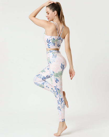 The high-waisted slimming leggings provide gentle compression to your midsection, giving you a toned and trim look. The wide waistband offers you tummy support, making you look slimmer than you ever thought possible. Wear it at home or outdoors with Ziarre Floral Fitness Bra for the perfect barre-to-brunch look!
