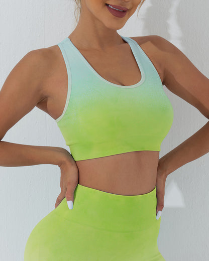 The Arabella Sports Bra is built to empower your workouts with style and performance. Featuring a racerback design and a flattering U-shaped neckline, it provides a secure fit while allowing full range of motion for any activity. The gradient ombré design adds a touch of bold flair.