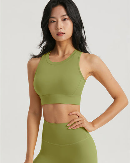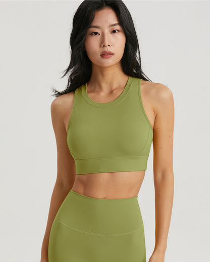 Ignite your workouts with the Ashlyn Sports Bra, designed to fuel every movement with its innovative features and luxurious comfort. Boasting a high neckline and a striking crossover back with a unique tear drop cutout, this bra seamlessly blends style with functionality for unrivaled performance.