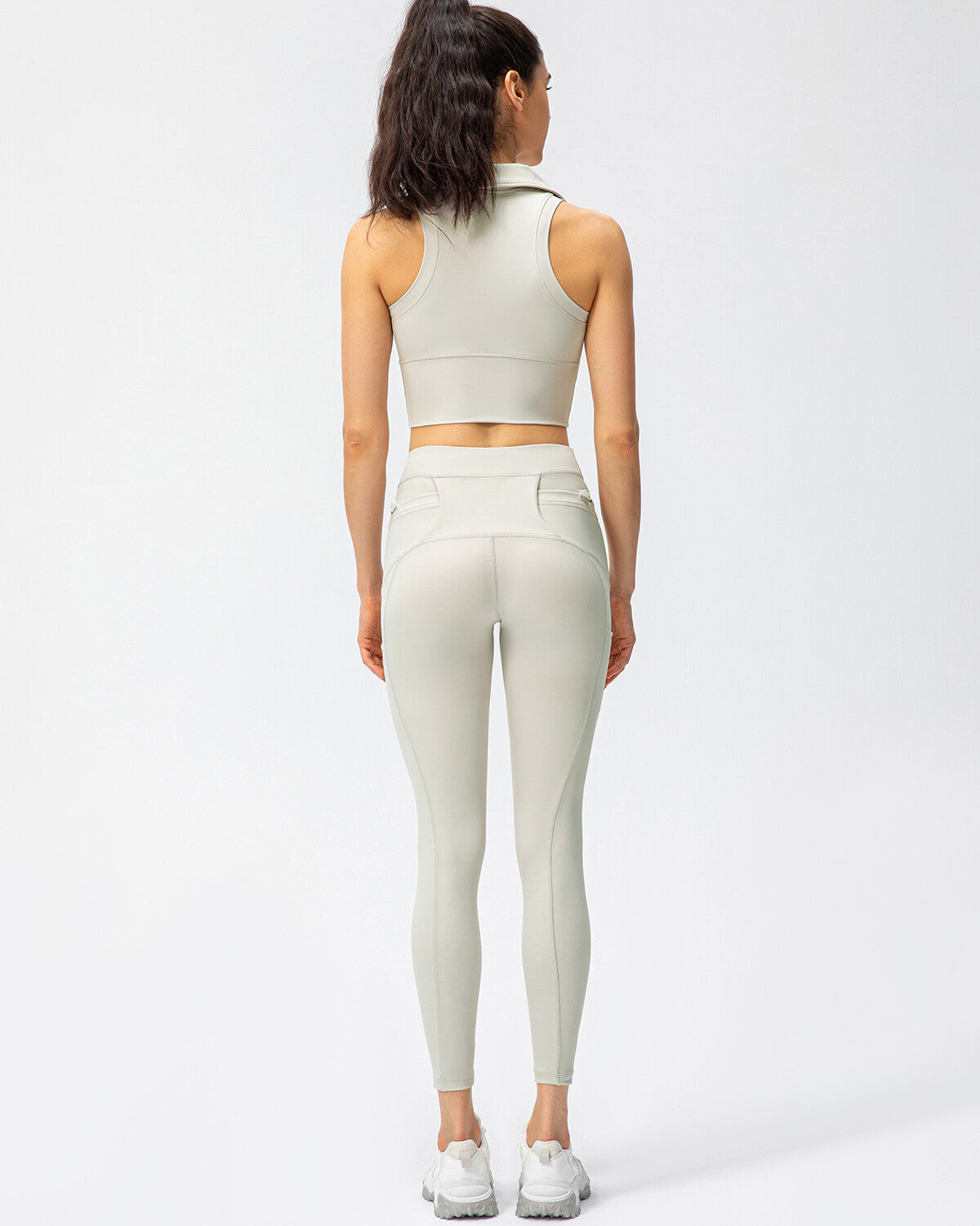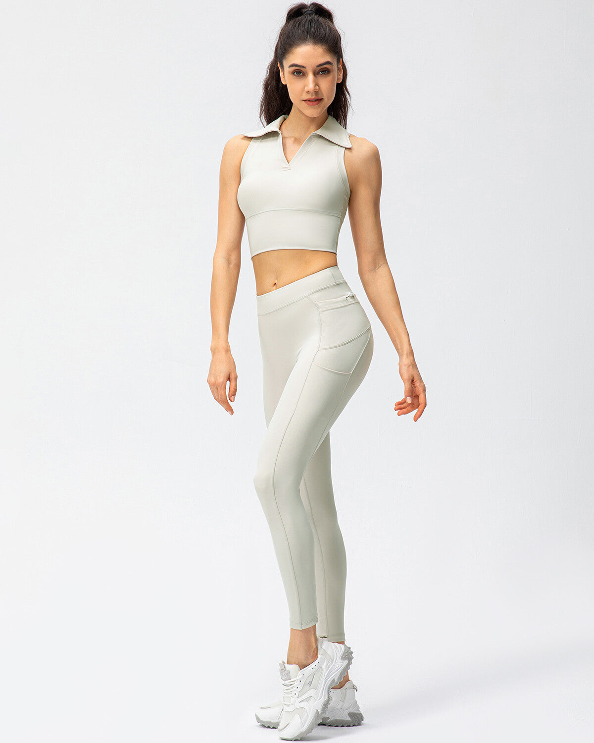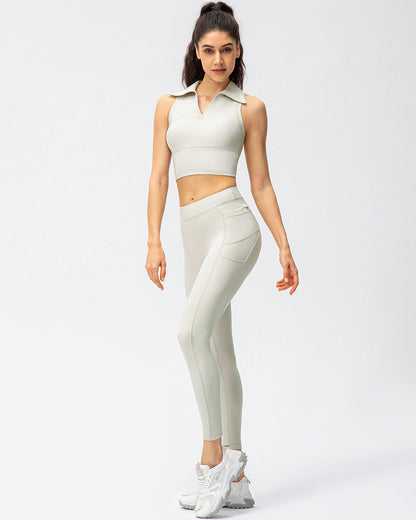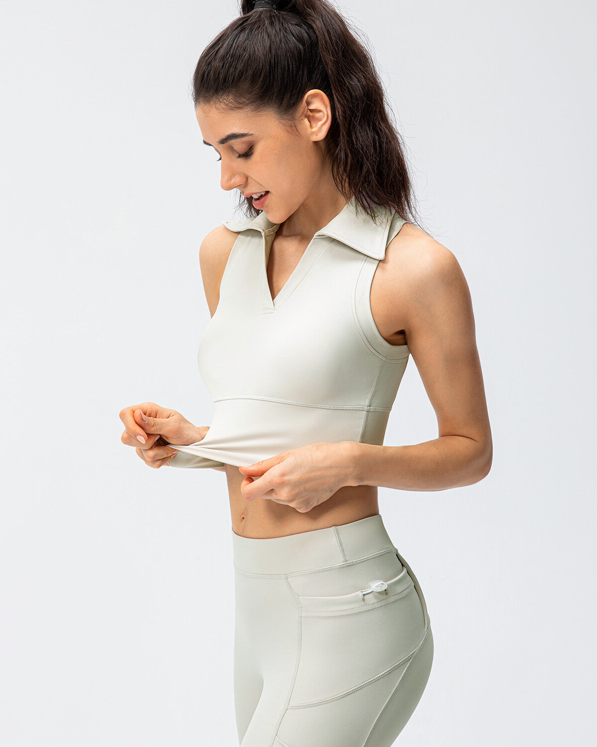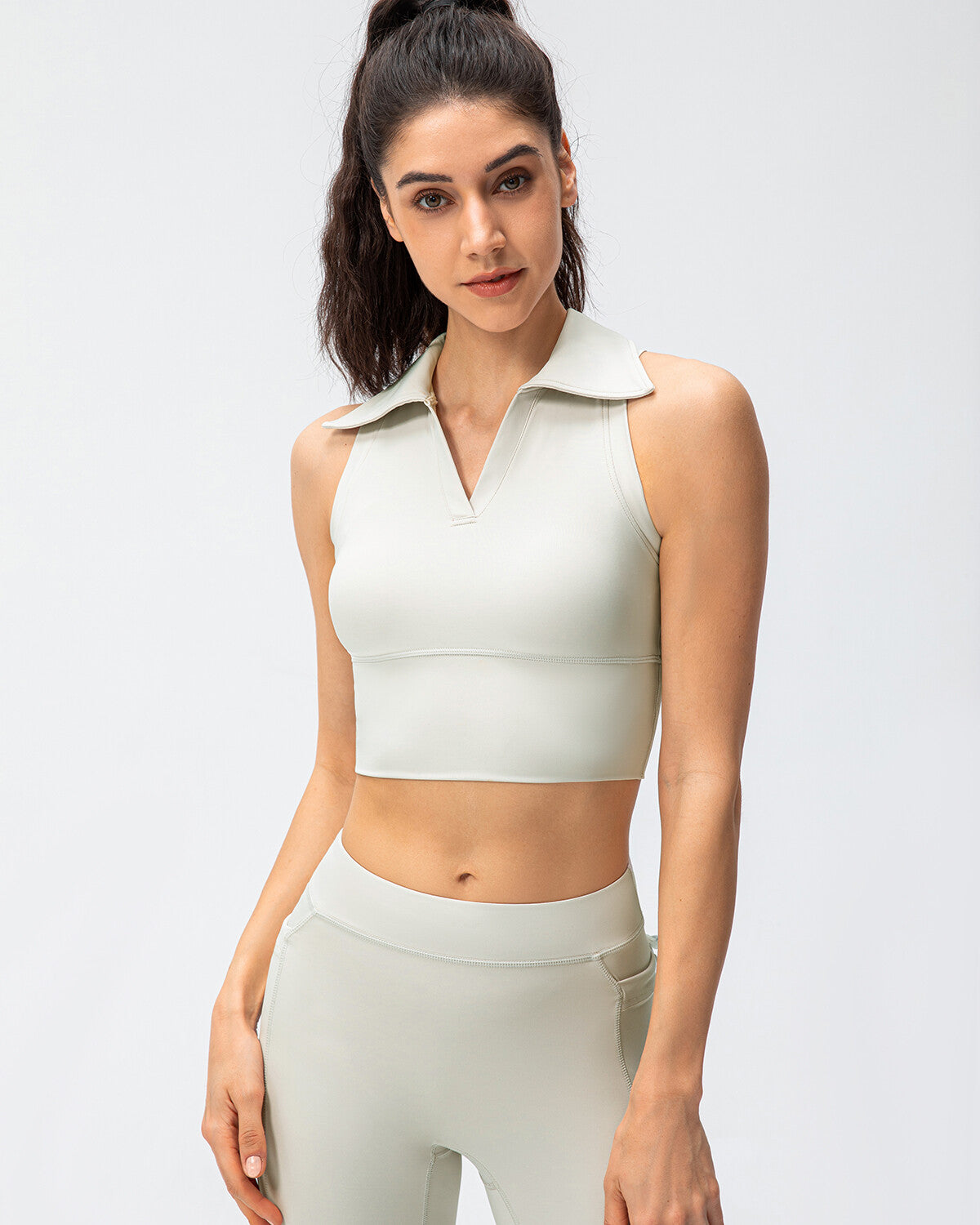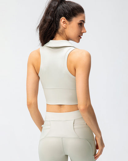 The retro lapel collar neckline adds sophistication, and the slim fit design flatters your curves. With a versatile plain design, this tank top can be easily paired with various sports or casual outfits. Elevate your fashion, function, and performance with the Everly Crop Top.