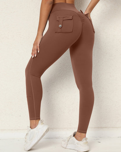 The Aubrey Scrunch Pocket Leggings are a perfect addition to any wardrobe. Made from butter-soft 4-way stretch peach fabric, these leggings provide a comfortable and flattering fit that moves with you. They feature two back pockets for storing essentials and a high waist with an elastic waistband for comfortable coverage and tummy control.