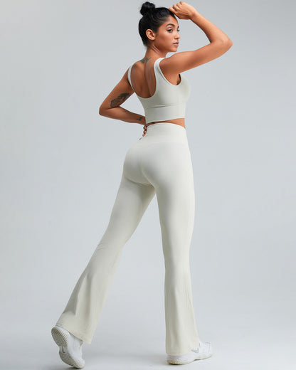Embrace your inner goddess with the Christina Flare Leggings, designed to elevate your workout and unleash your unstoppable energy. Featuring a flare bottom and crafted from seamless ribbed fabric, these leggings offer both style and functionality, ensuring a seamless blend of comfort and performance.
