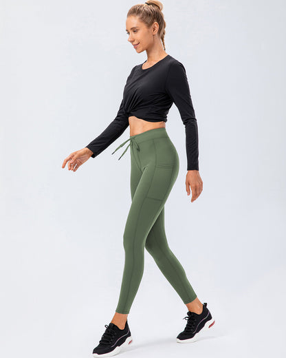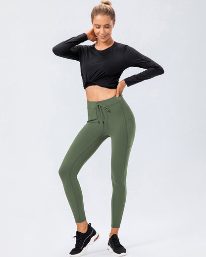 Introducing the Clara Pocket Leggings, the ultimate combination of style and functionality. These drawstring sports leggings are equipped with side pockets, ensuring that your essentials are always within reach. The contoured riser design enhances your natural curves, providing both comfort and a flattering fit.
