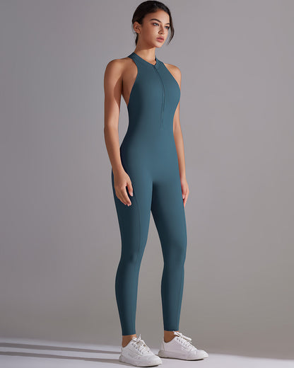 Step into ultimate style and performance with the Coralie Seamless Scrunch Jumpsuit. Designed with a sleek, body-contouring fit, this long-leg jumpsuit features a 3/4 front zipper for easy on-and-off, making it your go-to for any workout or athleisure look.