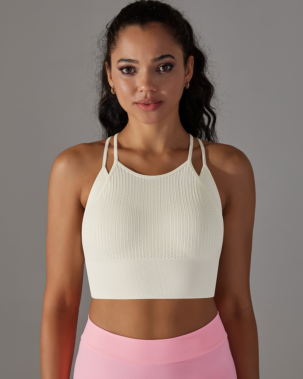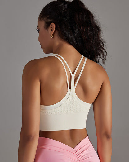 The dual front strap and strappy back design strike the ideal equilibrium between support and flexibility, while the wide bottom band ensures security without compromising elegance. With medium support, Coraline is your ultimate choice for yoga, workouts, and beyond – a fusion of enduring comfort and chic design.