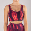Turn up the heat with the Daphne Sports Bra, featuring a striking tie-dye pattern that mimics swirling smoke and flames. With a seamless design and a sleek U-shaped neckline and back, this sports bra is as stylish as it is functional.