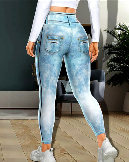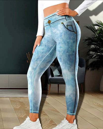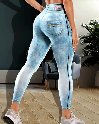 Embrace your inner fashionista without sacrificing comfort. Our Denim Delight Leggings are the perfect addition to your wardrobe. Pair them with your favorite sneakers or dress them up with a blazer – the possibilities are endless.