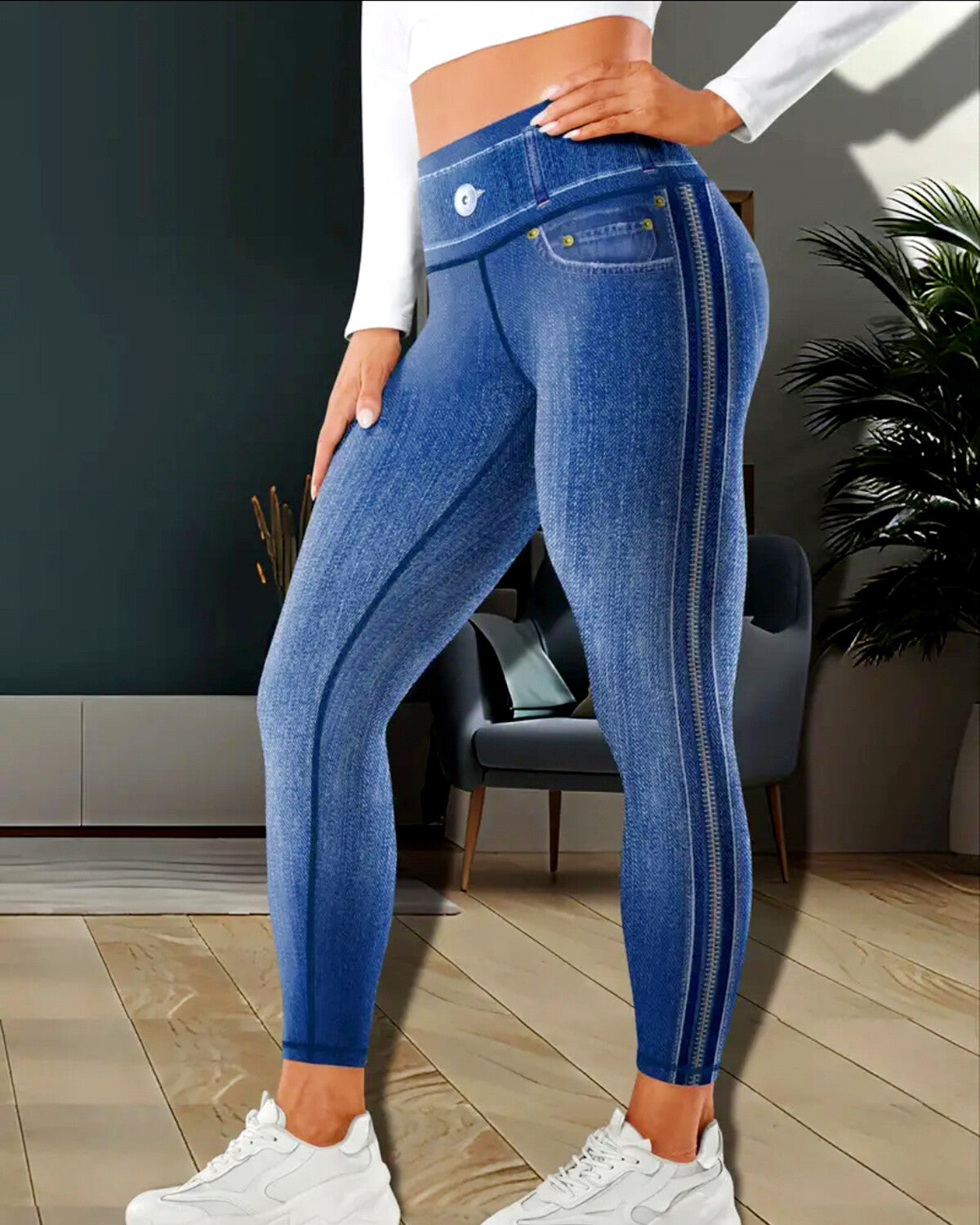 Embrace your inner fashionista without sacrificing comfort. Our Denim Delight Leggings are the perfect addition to your wardrobe. Pair them with your favorite sneakers or dress them up with a blazer – the possibilities are endless.