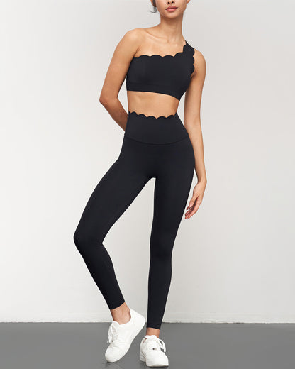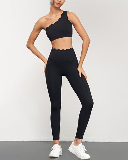 Immerse yourself in the blend of style and functionality with our Dulce Seamless Leggings, designed to redefine your workout essentials. Crafted from buttery-soft fabric and adorned with exquisite scalloped waistband details, these leggings offer a luxurious feel and a touch of elegance to your activewear collection.