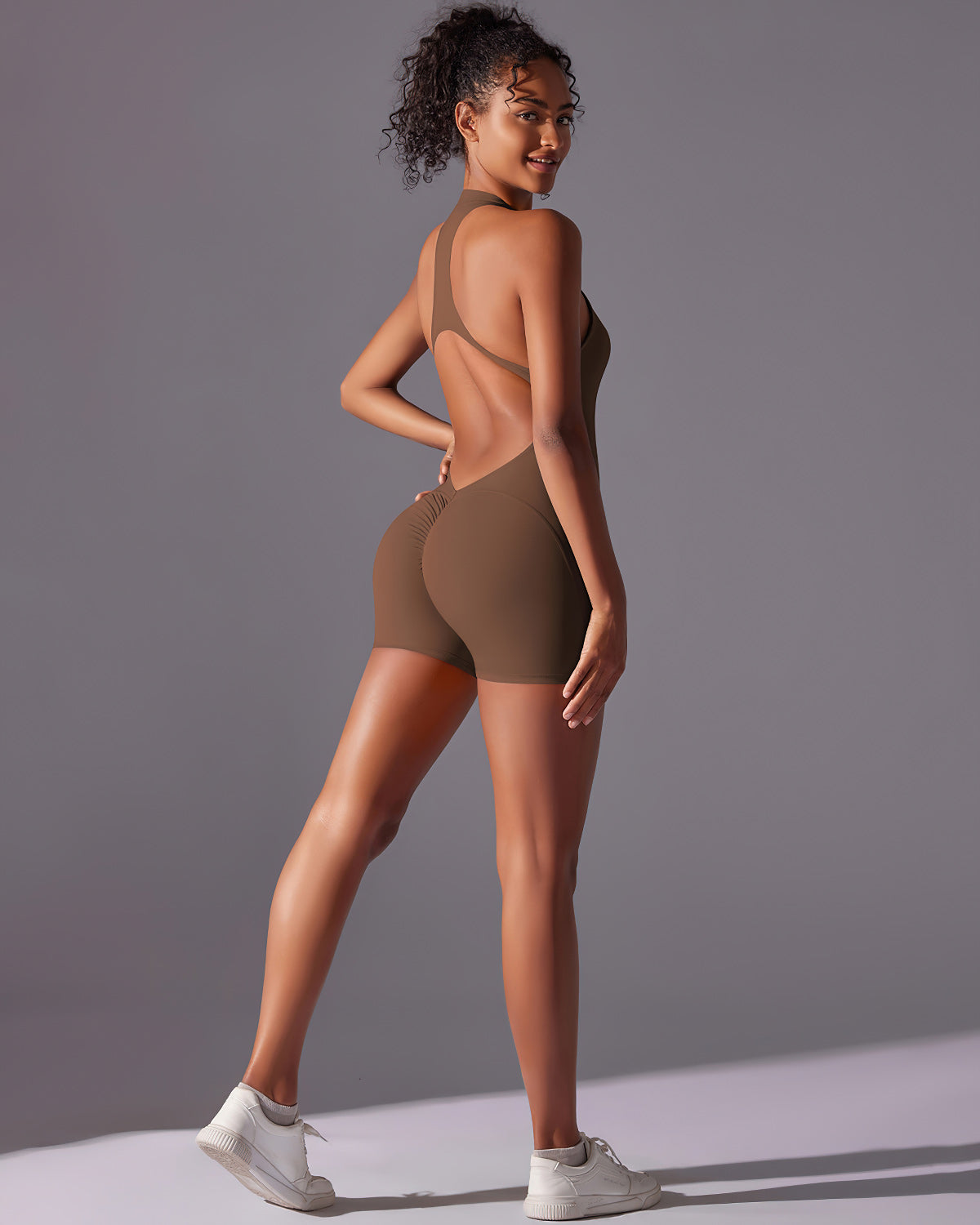 Designed with a scrunch detail at the back, the jumpsuit contours your body beautifully, enhancing your curves and providing confidence in every move. The high-performance, lightweight fabric feels incredibly soft and stretchy, ensuring comfort whether you're hitting the gym or going about your day.