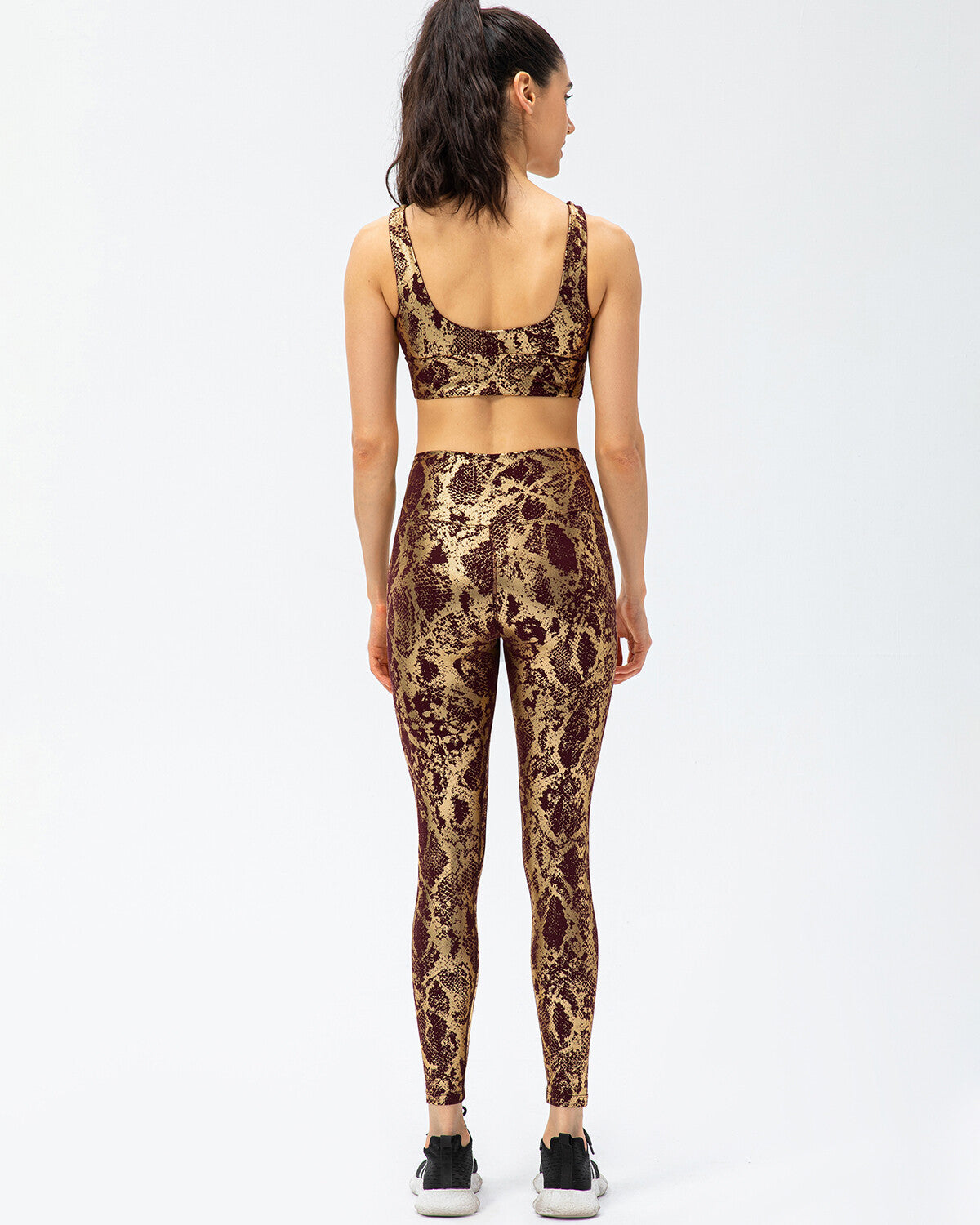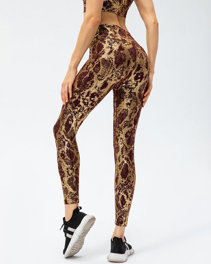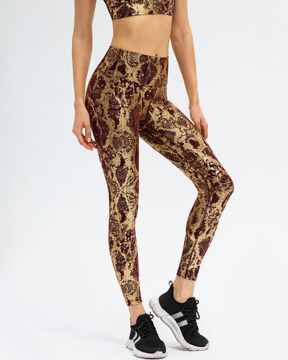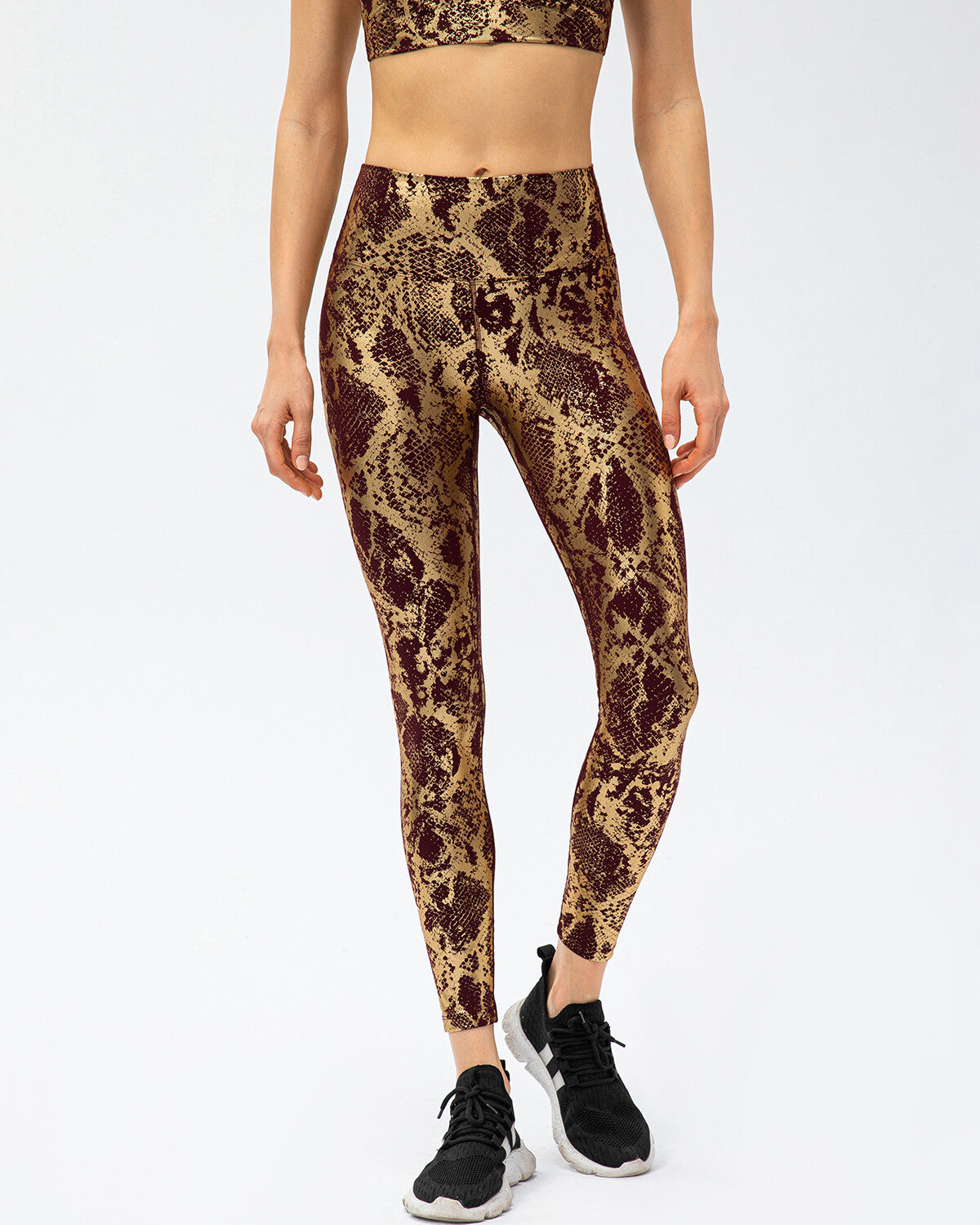 Step up your workout game with the Emery Metallic Leggings! These high-rise leggings with a metallic snakeskin print are the perfect addition to your gym wardrobe. The extra-wide waistband provides major contouring, while the compressive fit ensures that you feel supported during any intensity workout.