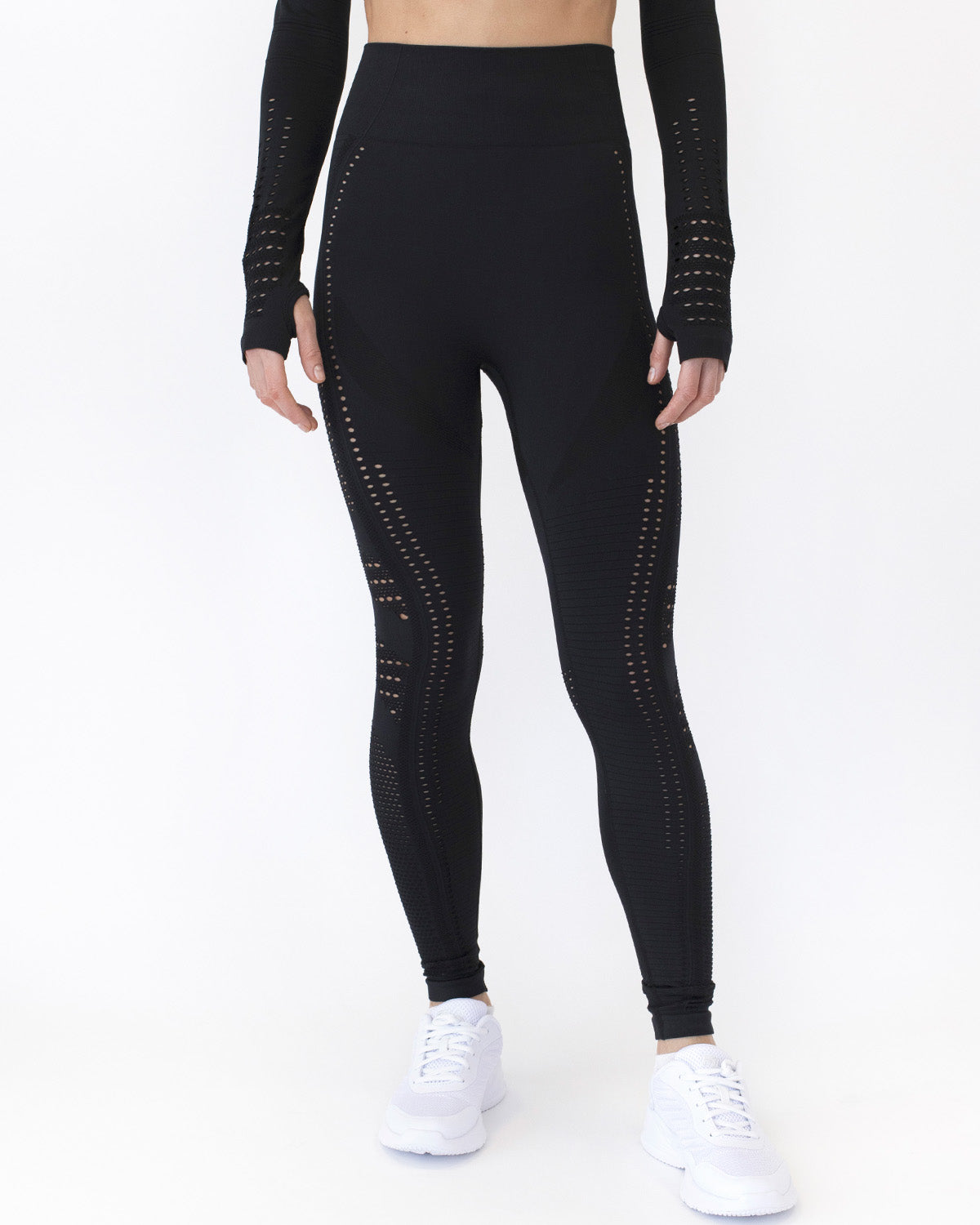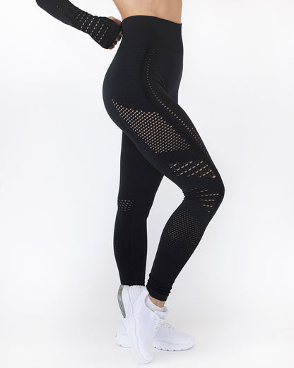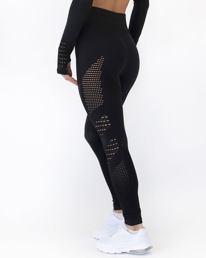 From a distance, it looks like a regular legging, but get closer, and you’ll notice the mesh panels. This is an outfit for when you need maximum coverage but still, need the benefit of heat expulsion. Perfect for everything you want to do all day. Slip on a white pair of sneakers and our Gracey Hollow Out Long Sleeve - Black!