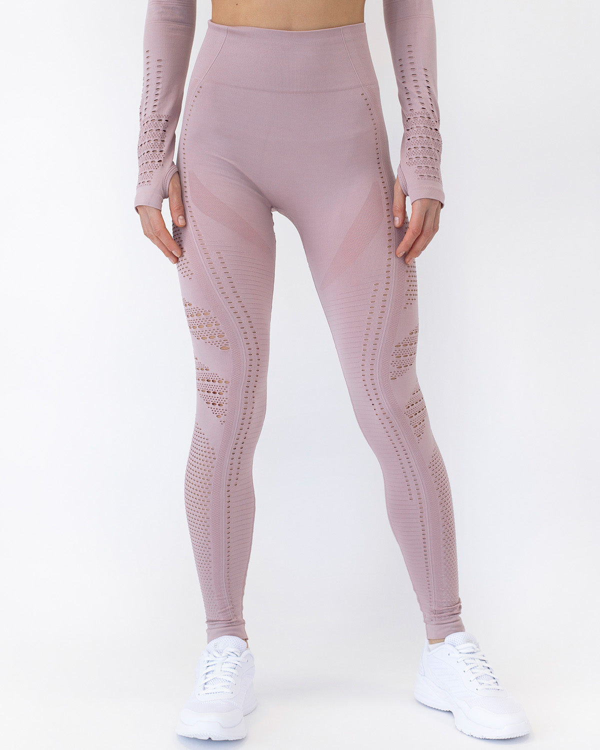 From a distance, it looks like a regular legging, but get closer, and you’ll notice the mesh panels. This is an outfit for when you need maximum coverage but still, need the benefit of heat expulsion. Perfect for everything you want to do all day. Slip on a white pair of sneakers and our Gracey Hollow Out Long Sleeve - Pink!