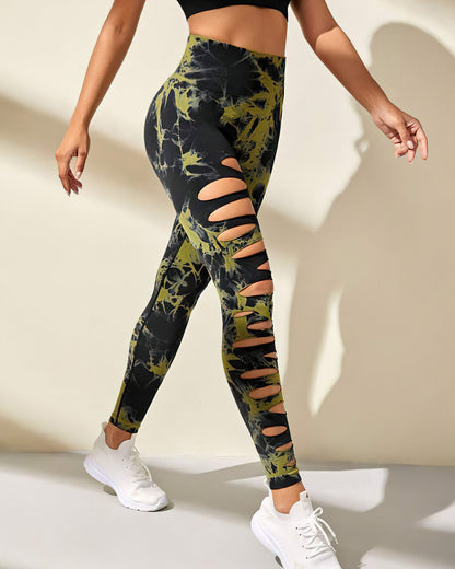 Elevate your workout wardrobe with the Halle Seamless Leggings, a perfect fusion of style and performance. Designed for the dynamic, these high-waisted leggings boast a bold ladder cut-out on one side, adding an edgy flair to your fitness ensemble. The seamless construction ensures a smooth, second-skin fit that moves effortlessly with you, while the eye-catching tie-dye design reflects your vibrant energy.